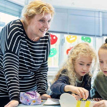 We kijken naar wat elk kind nodig heeft, want iedereen is anders. Sommige kinderen leren snel, anderen hebben meer tijd nodig. Sommige kinderen vinden lezen leuk, anderen houden meer van rekenen of tekenen. We vinden niet alleen kennis belangrijk, maar ook dat kinderen leren hóe ze kunnen leren. Dus leren ze bij ons ook hoe ze goede vragen kunnen stellen, hoe ze informatie kunnen vinden en hoe ze hun werk kunnen plannen.